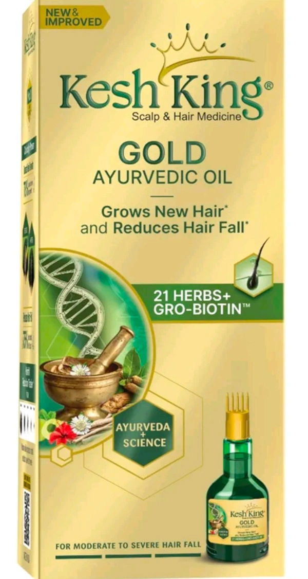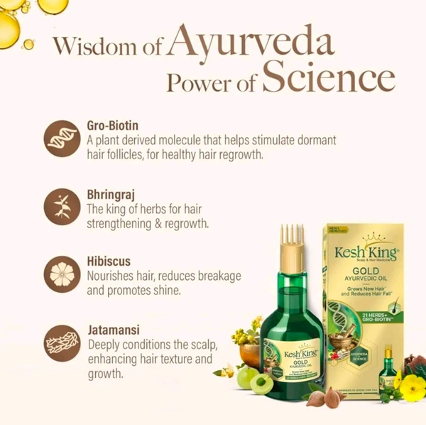 Kesh King Gold Ayurvedic Hair Oil with 21 Herbs and Gro-Biotin - Your Ultimate Solution to Hair Fall